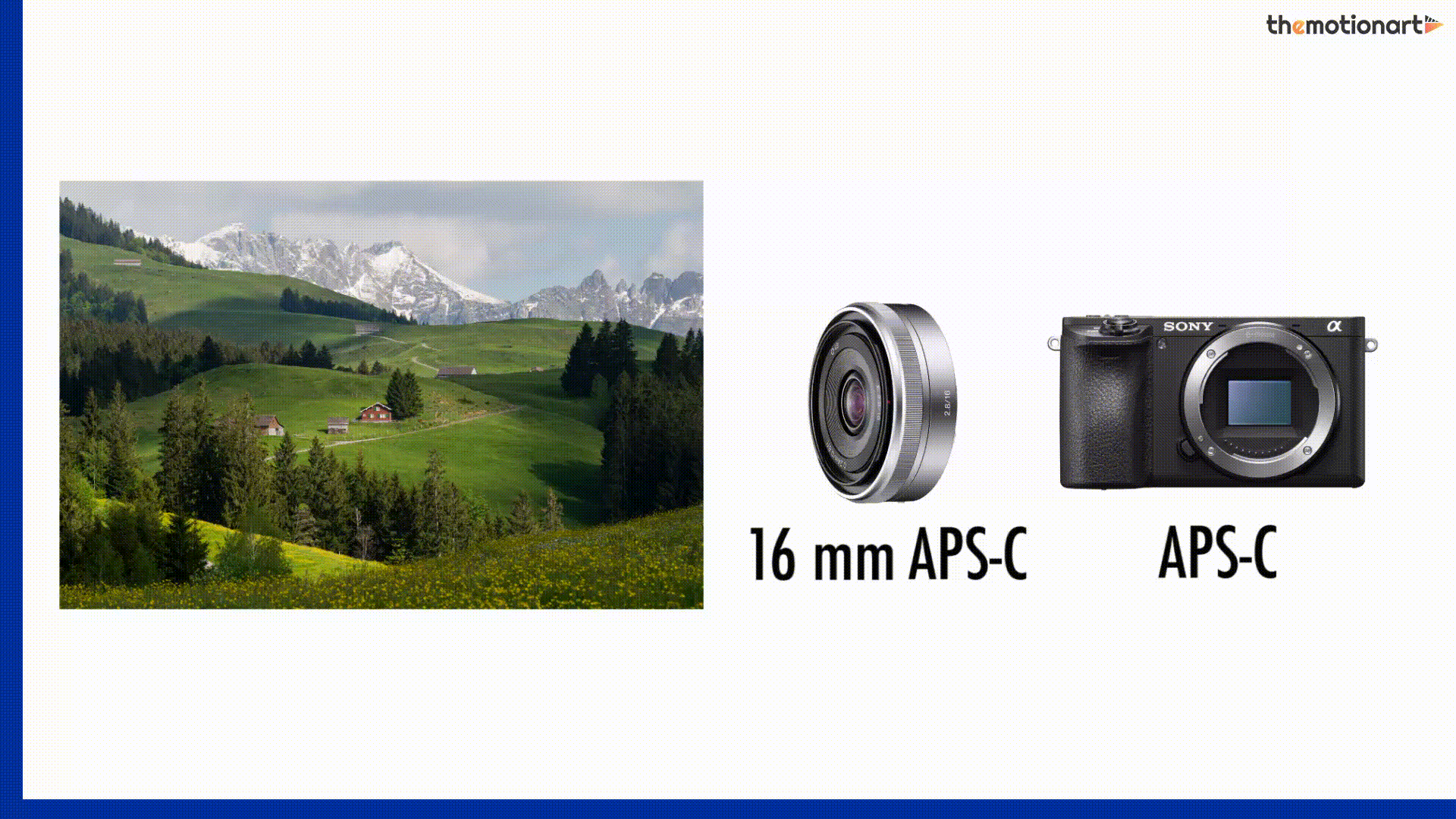 Come puoi vedere dall'immagine, l'obiettivo non riuscirà a coprire tutto il campo visivo frontale, perché il sensore ha una superficie minore del previsto. Eseguirà quindi un ritaglio (crop per l'appunto).