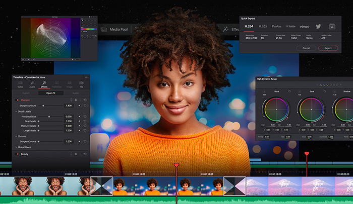 Questo software, sviluppato da Blackmagic Design, è nato come software per la color grading avanzata e si è evoluto negli ultimi anni, diventando anche un ottimo software per il montaggio video e audio.